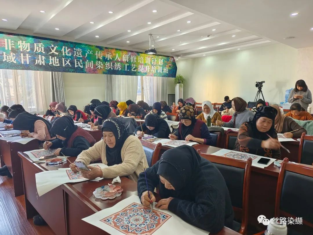 11月13 日上午,由甘肃省文化和旅游厅指导,兰州交通大学主办,我院染缬艺术研究所(博物馆)承办 , 临夏回族自治州文化馆协办 的“中国非物质文化遗产传承人研修培训计划——2023年 黄河流域甘肃地区民间染织绣技艺提升培训班 ”开班仪式在 临夏回族自治州文化馆 隆重召开。我院常务副院长赵保卫教授、 社会服务与成果转化中心伍忠东主任和 临夏州文化馆负责同志出席, 部分授课专家, 兰州交通大学染缬艺术研究所部分师生,临夏州文化馆相关同志, 以及来自 临夏州 的 50 名 参培学员 参加了本次活动。