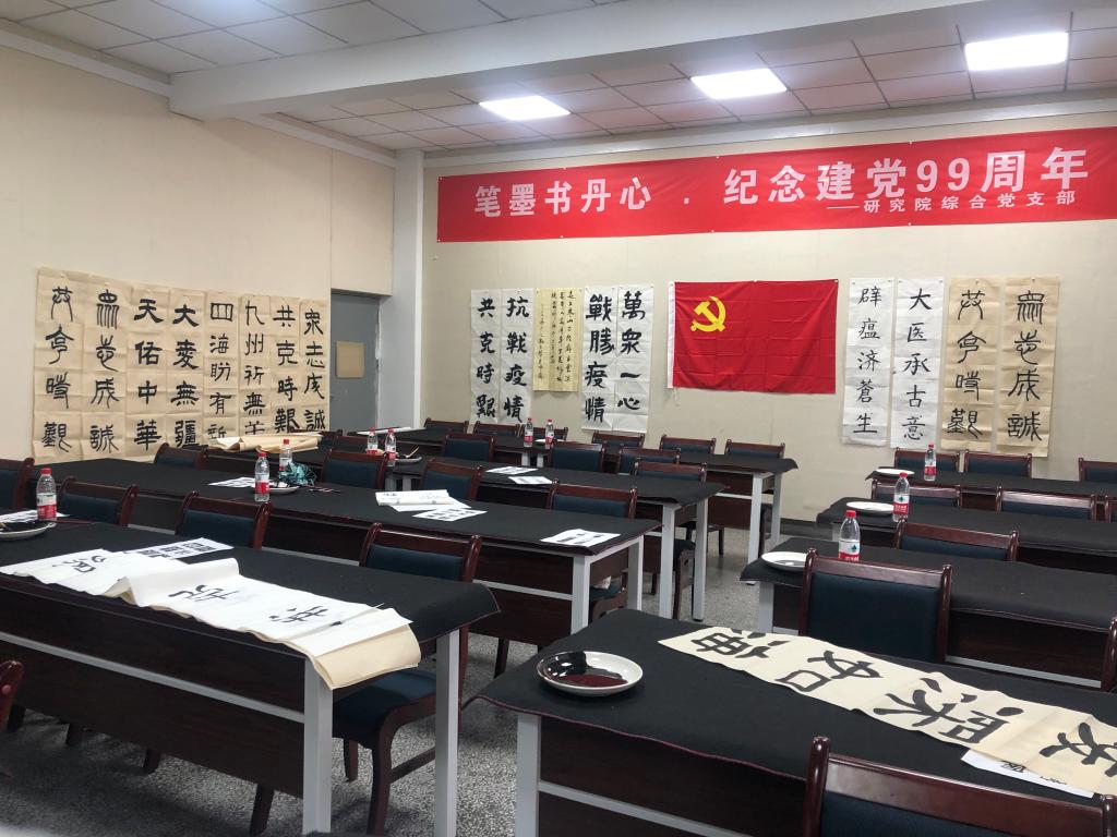 为纪念中国共产党成立99周年,激发党员活力,加强支部队伍建设,7月16日研究院综合党支部在中国书法文化研究所专用教室开展“笔墨书丹心·综合党支部纪念建党99周年主题党日活动”。