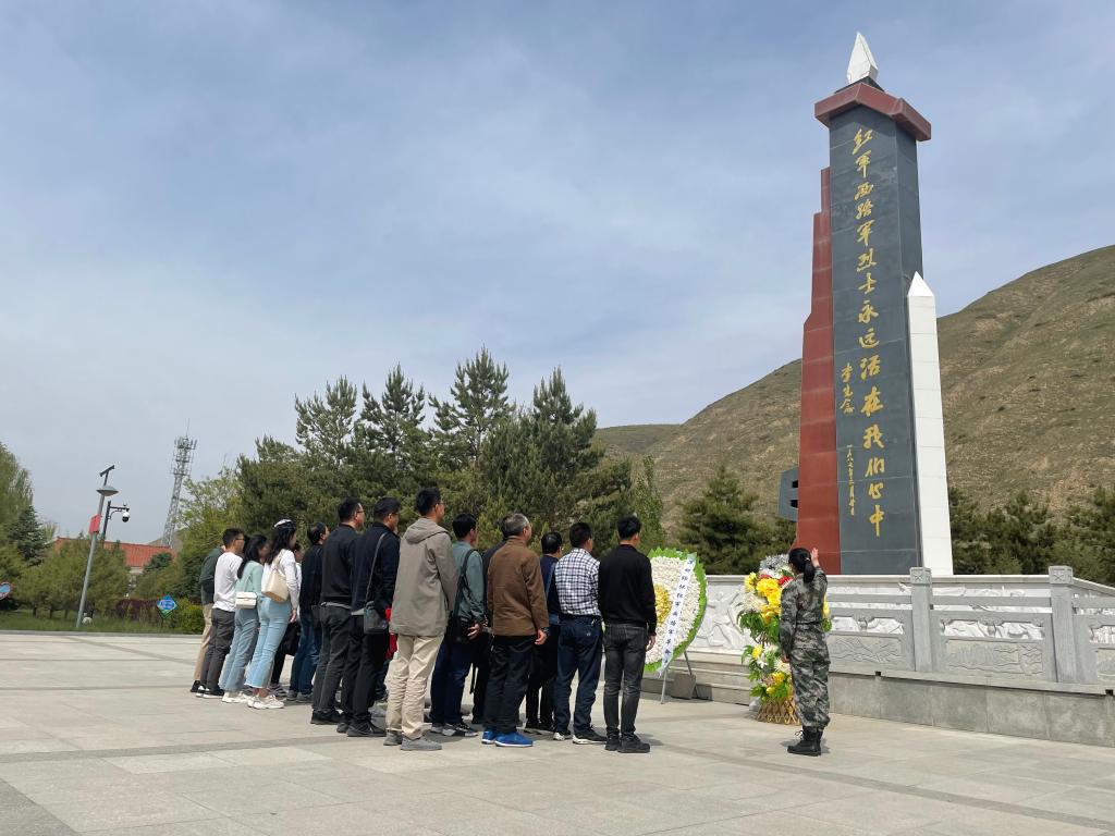 躯壳纵填沟壑去,精神犹在海张天。28日上午,研究院一行人员前往古浪战役纪念馆进行参观学习。在西路军英雄纪念碑前,两排挺拔的松柏葱郁苍翠,“红军西路军烈士永远活在我们心中”十五个鎏金大字赫然醒目。全体党员怀着沉重的心情,为在古浪战役中牺牲的革命烈士敬献花篮,并向为国捐躯的革命先烈三鞠躬表达深切的哀思和崇高敬意。随后跟随讲解员的步伐,参观了古浪战役纪念馆,并在党旗下重温入党誓词。革命先烈的壮烈英雄事迹激励着党员干部及学生党员以更加昂扬的精神和更加积极的工作态度投身社会主义建设事业。