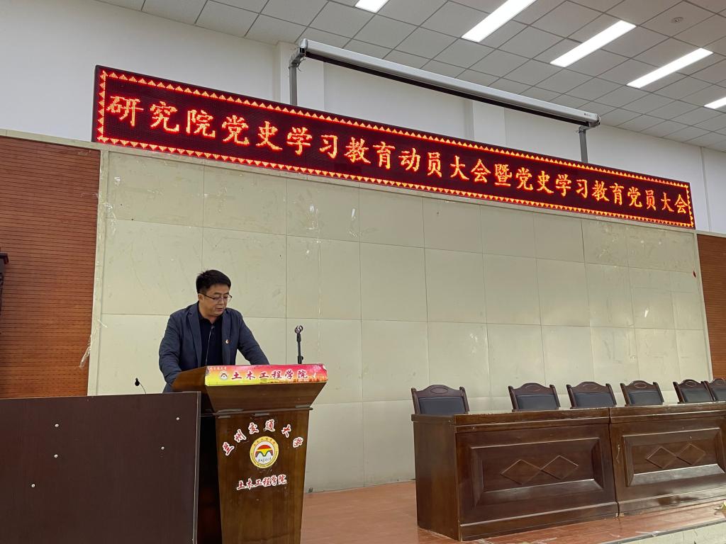 党委书记张浩玮就《研究院开展党史学习教育实施方案》从目标要求、学习内容、进度安排、学习方式、组织领导等五个方面进行了安排说明,并作动员讲话。他指出,认真学习贯彻习近平总书记在党史学习动员大会上的讲话精神,按照学校统一部署,开展党史学习教育是全院当前一项重要政治任务,要在全院上下迅速掀起学习教育热潮,狠抓贯彻落实,坚决做到全面覆盖、推进有力。院属各党支部要高度重视,充分发挥主体作用,加强组织领导,把握正确方向、坚持务实作风、营造浓厚氛围,立足实际、真正做到学史明理、学史增信、学史崇德、学史力行。全体党员要从党的百年光辉历史中汲取智慧和力量,为加快推进我校高水平教学研究型大学贡献力量,以实际行动和优异成绩庆祝中国共产党成立100周年。