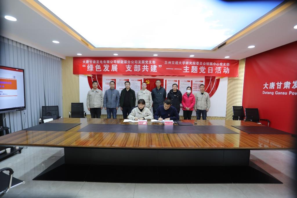 研究院镀膜中心党支部与大唐甘肃发电有限公司新能源分公司发展党支部签署了支部共建协议,建立长期产学研合作关系。大唐甘肃发电有限公司新能源分公司党委副书记做了总结发言。
